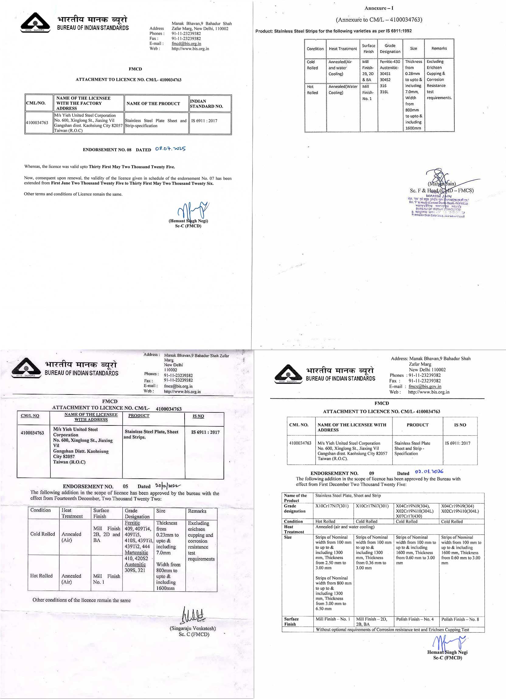 正字標記證書(熱軋不銹鋼鋼板鋼片及鋼帶)